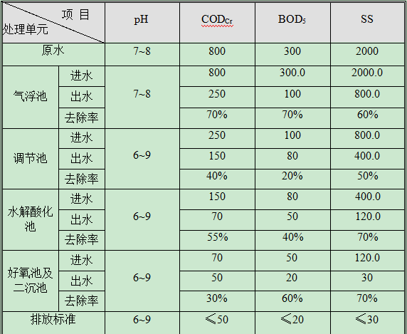 主要污染物去除效果
