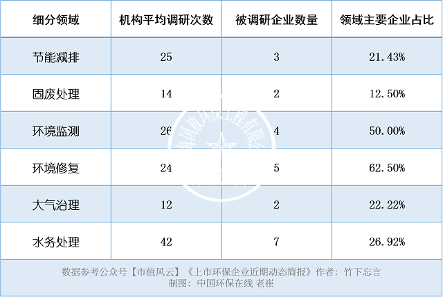 從上圖不難看出,過去一段時期,環境監測、環境修復與大氣治理3大領域更受機構青睞,相應的其他幾個領域的受關注程度有所下滑。中國環保在線分析,主要原因在于國家政策風向的轉變,環境監測與環境修復受政策影響更大,使得機構“望風而動”。