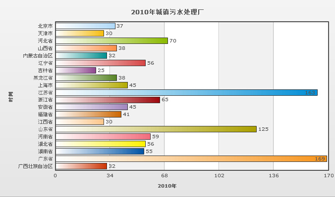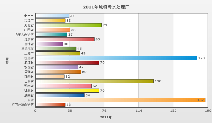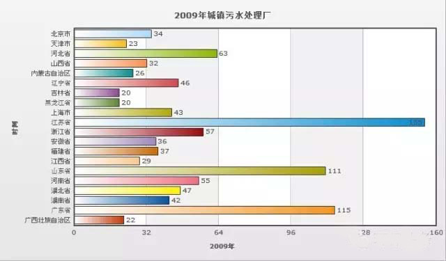 從數據上看,全國城鎮污水處理廠數量前三甲分別為:江蘇省、廣東省、山東省,三省合計占全國總數量的三分之一。下圖為部分省市污水處理廠數量圖表。(本文由中國環保網www.chinaenvironment.com 楊杰 編輯整理,如需轉載,請注明出處)