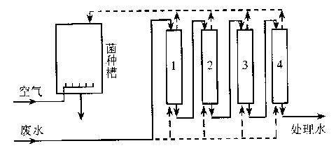 生物再生試驗(yàn)流程見圖3。吸附試驗(yàn)時(shí)4柱串聯(lián)運(yùn)行,再生運(yùn)行時(shí)4柱并聯(lián)操作。